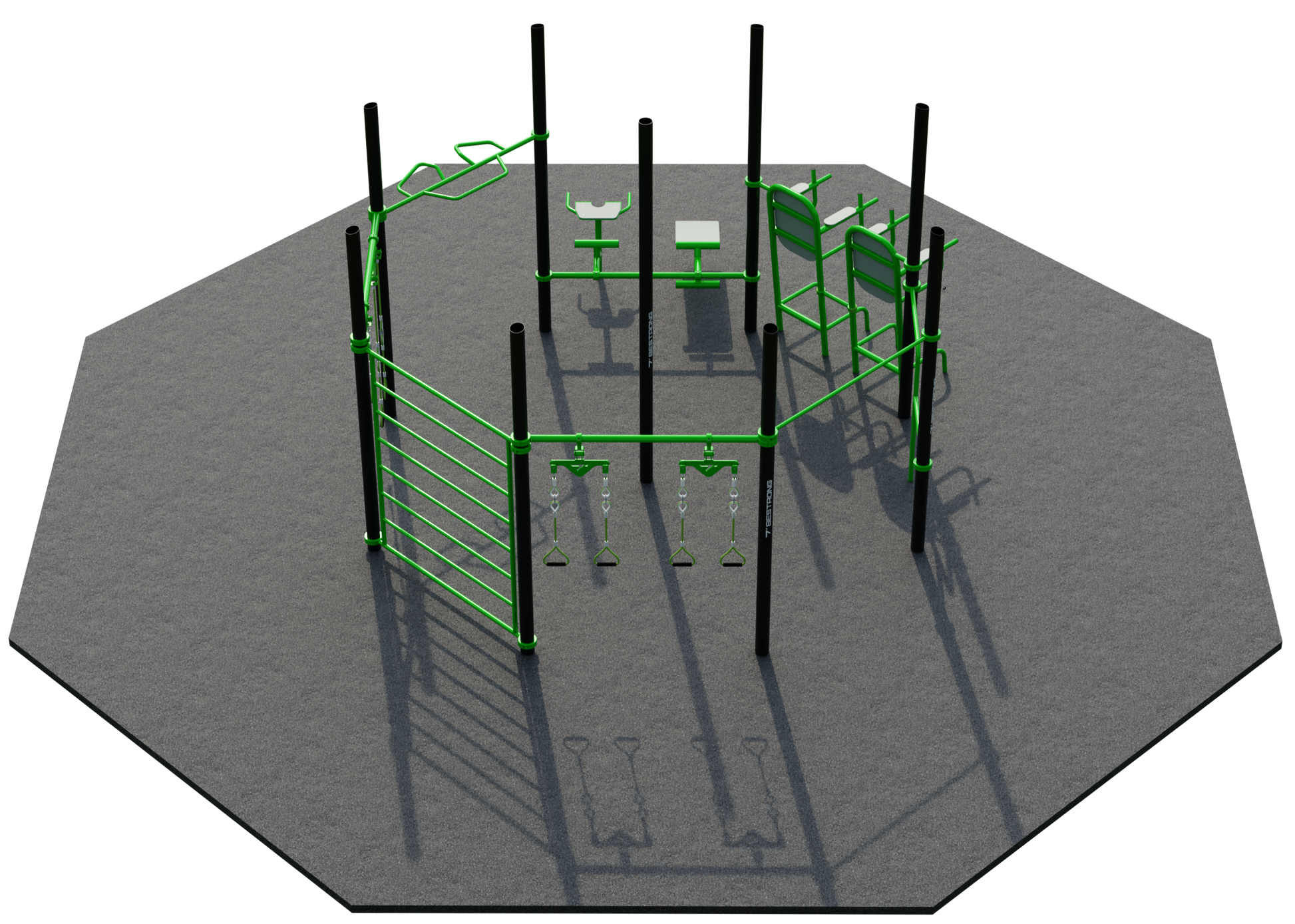 Migliora l'esperienza di fitness nella tua scuola con FitCampus 2. Progettata per soddisfare le esigenze specifiche degli studenti, questa struttura all'aperto offre una gamma completa di attrezzature sportive che promuovono la salute fisica e il benessere. Con FitCampus 2, gli studenti o i cittadini possono godersi allenamenti tonificanti e sviluppare abitudini sane in un ambiente divertente e stimolante.