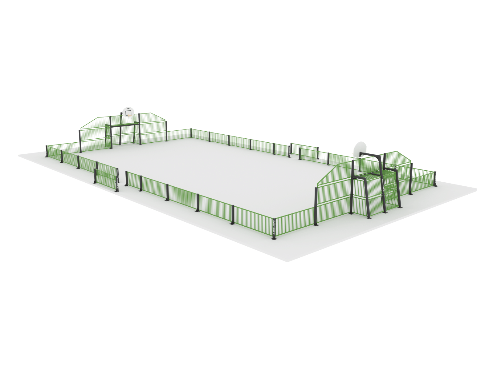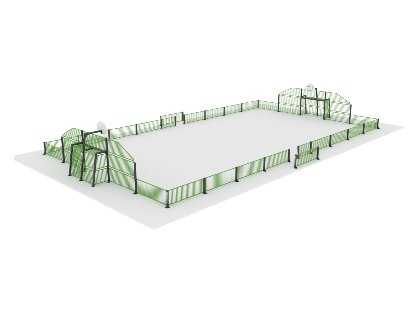 Il Syracuse MUGA è un complesso sportivo all'aperto adattabile e di grandi dimensioni, progettato per facilitare una moltitudine di sport come calcio, basket e tennis. Racchiuso in una recinzione in acciaio resistente e anti vandalismo con un'altezza di 1000 mm, fornisce un ambiente sicuro e affidabile per le attività sportive.